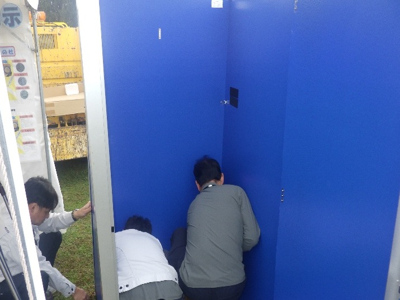 災害用トイレ組立状況